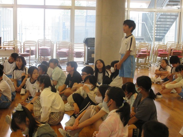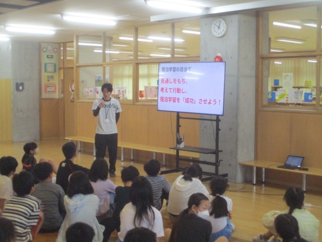 学年集会を開き、宿泊学習の目当てや主な日程について確認し合いました。今後は班や係を決め、詳しい活動内容を確認したり、班で役割や持ち物を相談したりしていきます。子供たちの真剣な表情や笑顔から、子供たちが宿泊学習を楽しみにしている様子が伝わってきます。