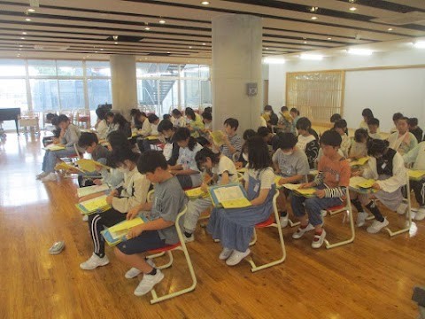 宿泊学習まで2週間となり、しおりの配付を行いました。子供たちはしおりを読みながら、詳しい日程や持ち物、注意事項等を確認し合いました。宿泊学習を思い出に残る最高のものにするために、真剣に先生の話を聴き、しおりにメモする子供たちの姿が見られました。