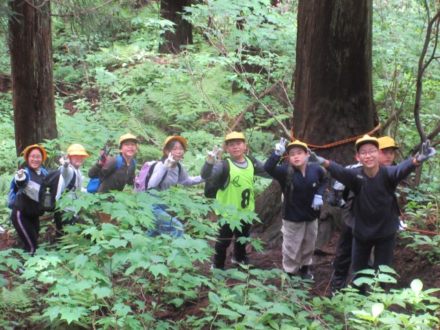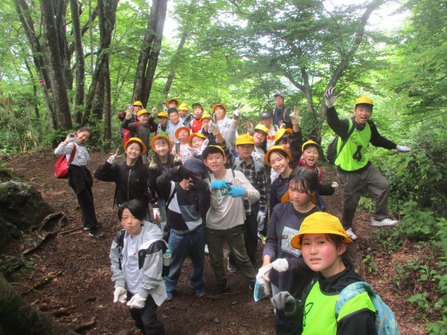 来拝山登山では、友達と声をかけ合い、全員が山頂に到着することができました。