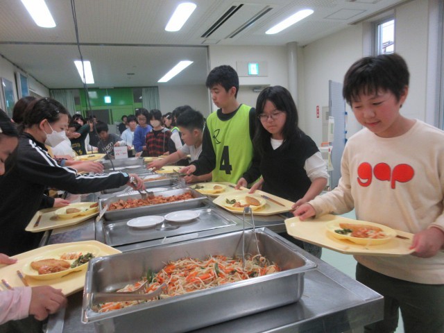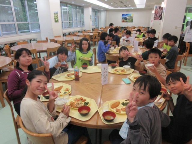 夕食はバイキング形式で、友達と盛り上がりながら笑顔でご飯を食べていました。