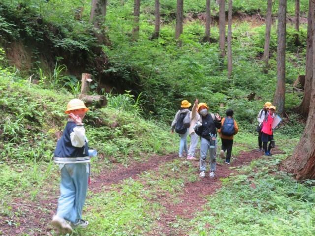 宿泊学習1日目は、竹箸づくりやオリエンテーリング、キャンプファイヤーをしました。普段とは違う環境の中で、班の友達と協力して、楽しみながら活動することができました。
