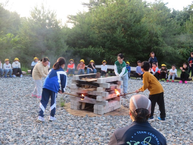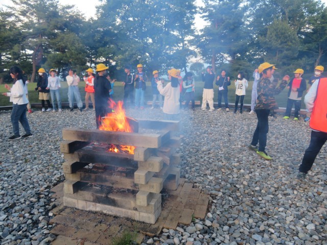 キャンプファイヤーでは、各班が歌やダンスなどの出し物を行い、全員でキャンプファイヤーを盛り上げていきました。