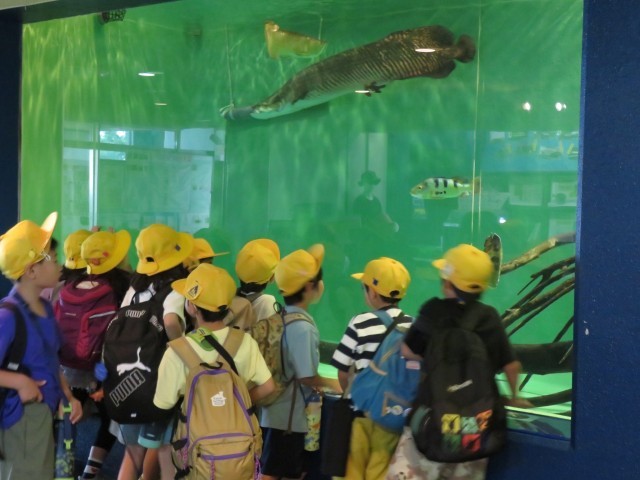 午後からはミラージュランドでの班別学習を予定していましたが、雨と雷注意報が発令されていたため、予定を変更し、魚津水族館での班別行動に変更しました。