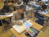 5年生は図画工作科の授業で、「〇〇している自分」を木版画で表しています。子供た...