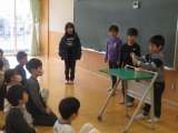 生活科で作ったゴムのおもちゃを使った「ゴムの力ランド」に、全校児童を招待しまし...