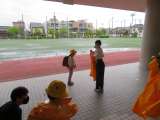 雨の日は、登校後、1年生の雨合羽の始末を手伝っています。 ぬれた合羽を脱ぐ手伝い...