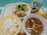 今日の献立は、ごはん、牛乳、いわしの生姜味、茎わかめサラダ、白玉汁、ヨーグルト ...