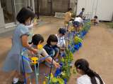 子供たちが、毎朝水やりをしている野菜の苗が大きく育ってきました。「つるが伸びて...