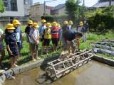子供たちは「バケツ稲」にも挑戦しました。手を泥だらけにしながら、笑顔でコシヒカ...