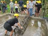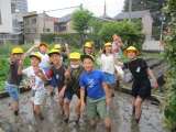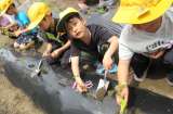 子供たちは「セントラル水田」を稲作を行うことができるような水田にするために、日...