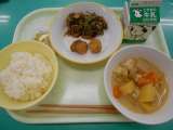 本日の献立は、ほたての香味焼き、もずくのチャプチェ、胡麻けんちん、黒糖大豆、で...