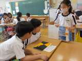 夏休みに頑張ってきた自由研究を紹介し合いました。友達の自由研究に興味津々の子供た...