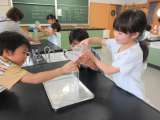 理科では、空気中の水を目に見える形にすることはできないかを実験しました。氷水を...