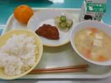 本日の献立は、豚肉の竜田揚げ、かぶの色どり、呉汁、冷凍みかん、です。 ※ 昨日...
