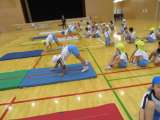 スポーツ指導員派遣事業によるマット運動の授業が行われました。 前転、後転、開脚前...