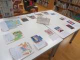 1学期に国語科の学習で作成した、本のポップを図書室で並べていただきました。放送...