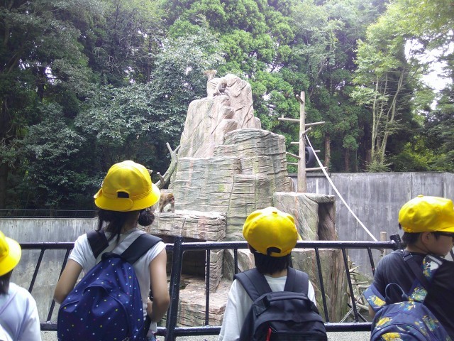サル山では、サルたちが岩壁の細い道を通る様子を見て「すごい!」と驚いたり、母ザルに毛繕いをしてもらう子ザルを見て、「小さいかわいいサルがいるよ」と注目したりしていました。帰りのバスの中では、「楽しかった!」「クマかっこよかった!」と、子供たちどうしで話し合っており、どの子も学年目標のにっこにこを達成することができました。
