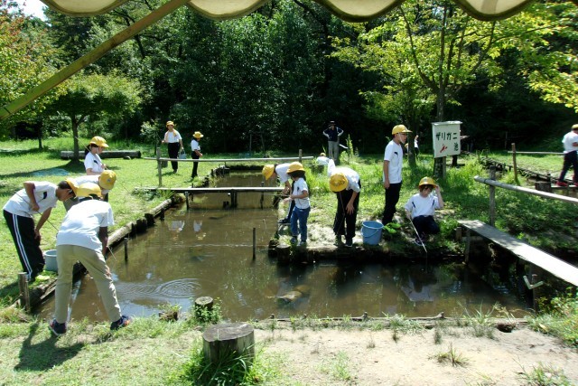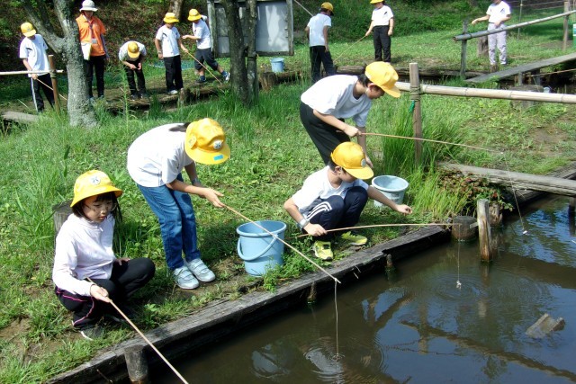 ザリガニ釣りでは夢中になって水辺に向かい、バンブーチャレンジでは協力しながら課題に挑戦しました。