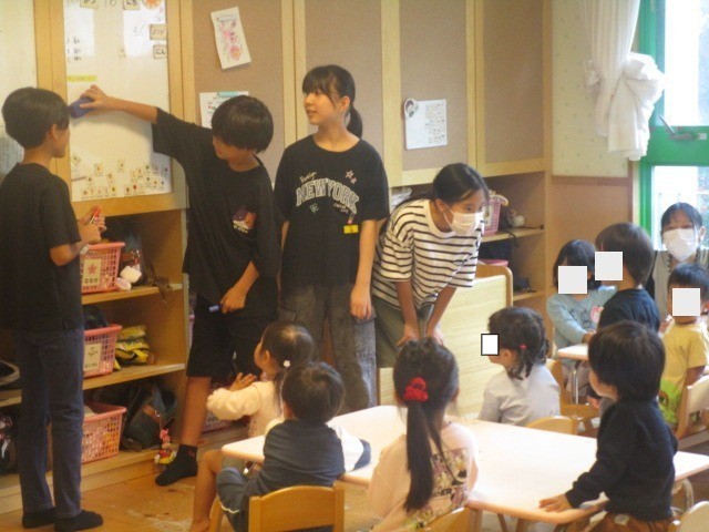 5年1組は、総合的な学習の時間に園児との交流を行いました。子供たちは、最初は緊張していましたが、子供たちと交流するうちに、だんだんと打ち解けて、楽しそうに活動していました。2回目の交流も楽しみにしています。