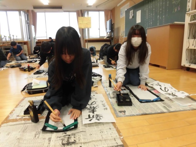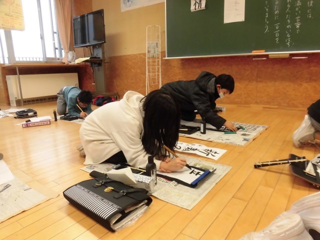 また書初大会では、しんとした静かな雰囲気の中で、子供たちは一画一画を丁寧に書いていました。