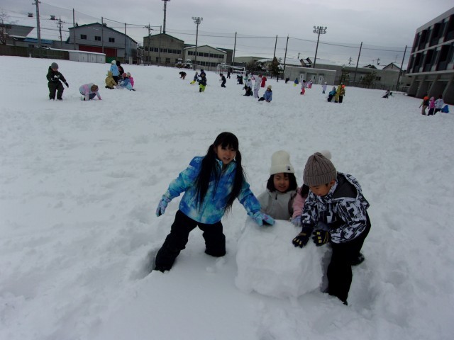 生活科「ふゆをたのしもう」の学習で、雪遊びをしました。子供たちは友達と協力して、雪だるまを作ったり、滑り台を作ったりして元気に活動していました。振り返りのワークシートで「とっても大きな雪だるまができたよ」「雪で遊ぶって楽しいね」と、冬という季節と雪を楽しんだ1年生でした。