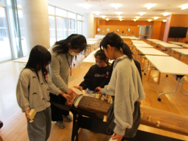 音楽科「日本の音楽でつながろう」の学習で、琴の体験授業を行いました。