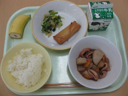 ごはん 牛乳 はるまき おひたし いかとだいこんのにもの バナナ
