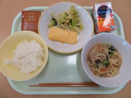 ごはん オレンジジュース とんこつラーメン ベーコンロールエッグ