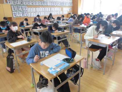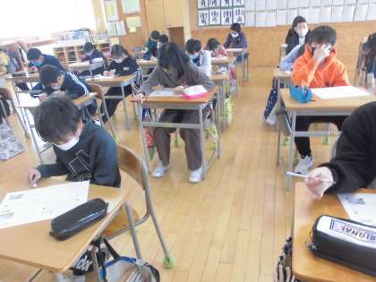 いよいよ長かった2学期も残り3週間になりました。学習もまとめの時期に入りました。朝は、友達と問題を出し合ったり、自主学習に励んだりとテストに向けて準備している様子が見られます。テストが始まると集中して、問題に取り組んでいます。