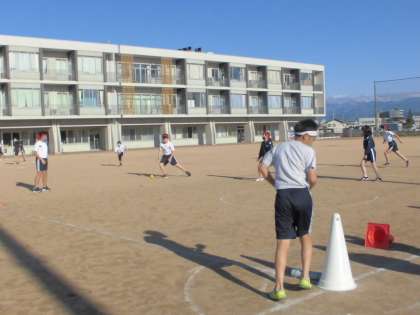トスボールの学習も後半に入りました。チームで考えた作戦を試して、改善し、次の試合に臨んでいます。自分たちが作戦通りに動けるように、実践に近い練習に切り替えるなど、練習方法をも見直しています。