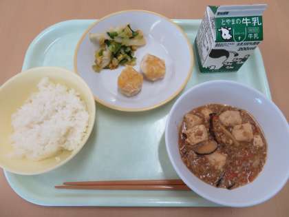 ごはん 牛乳 にんじんシューマイ コーンあえ マーボーどうふ