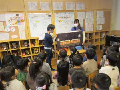 前回のことを振り返り、ゆっくり話したり、笑顔で接したりするなど、工夫して園児たちと関わっていました。前回の活動を生かして、より園児たちに楽しんでもらえるように行動することができました。
