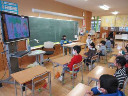 国語の学習では、お話の作者になって、1つの物語をつくりました。今日は、それぞれがつくったお話を聞き合いました。おもしろい出来事が起こったり、最後には幸せな気持ちになるような終わりになったりしていて、聞いている子供たちも楽しそうでした。