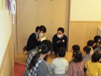 12月18日(金)は、園児との交流会最終日でした。5年生は、この日のために、休み時間におもちゃを作ったり、読み聞かせの練習をしたりするなど、園児を喜ばせようと一生懸命にがんばってきました。自主的に活動する姿は高学年らしく立派でした。相手の気持ちを考えた関わりや自主的な行動は、これからの生活に必ず生かされると思います。