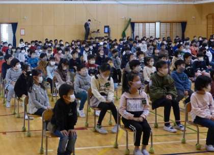 これまで体育館で行われてきた式は、校内テレビ放送の視聴を通して参加してきました。12月24日の2学期終業式は、1年生の子供たちにとって入学式以来の体育館での式となりました。ほどよい緊張感が流れ、背筋を伸ばして校長先生のお話を聞いている子供たちの姿に、大きな成長を感じました。