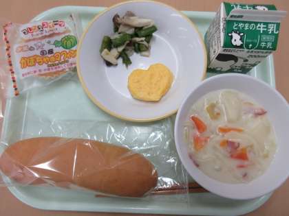 コッペパン 牛乳 くりのクリームに もりのきのこソテー