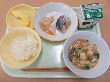ごはん 牛乳 さわらのしおやき あんばやし ちゅうかかきたまじる