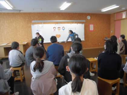 6年生は、道徳科の学習として「自分を守るための人権教育プログラム」を受けました。富山CAPのCAPスペシャリストの方々から、自分たちの周りにある様々な暴力や、それらの暴力から自分を守るための方法について学びました。ワークショップには、劇があり、楽しみながら学んだようです。