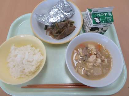 ごはん 牛乳 さばのぎんがみやき くきわかめのきんぴら
