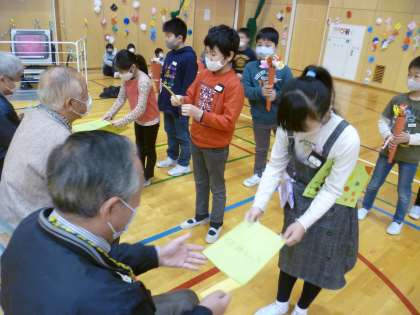 これまで総合的な学習の時間でお世話になったグリーンキーパーさんに感謝の思いを伝えるために、集会を開きました。子供たちは、司会・かざり・劇・プレゼント・替え歌・招待状・クイズのグループに分かれて、今日まで準備を進めてきました。