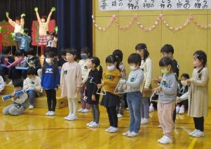 プログラム一番目に感謝の発表をしたのは、1年生でした。「かがやけ!6年生」と題して、これまで練習してきた「きらきら星」の合奏とダンスを披露しました。6年生が目の前に見ていてくれていることが、とてもうれしくて、とても張り切って発表できました。