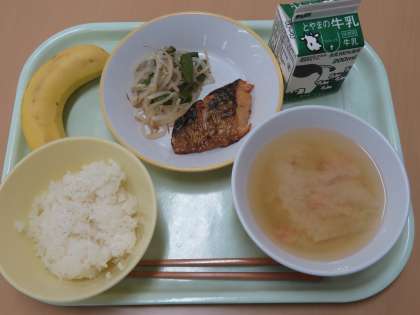 ごはん 牛乳 さばのしおやき もやしとアスパラのソテー みそしる