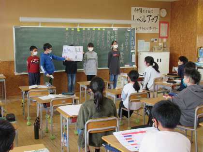 国語科では、相手に分かりやすく伝える発表の仕方について学習しています。生活の中で気になることをアンケート調査し、分かったことや考えたことをまとめてきました。今日は、分かったことや考えたことについての発表会を行いました。子供たちは、聞いている人の方を向いて話をしたり、グラフを見るための間をとったりするなど、今までの練習の成果を発揮していました。また、友達の発表を聞いて「意外な結果だな」とか「自分にもあてはまるな」と感想をもったり、発表の工夫を見付けたりしていました。学んだことをこれからの学校生活でも生かしていってほしいと思います。