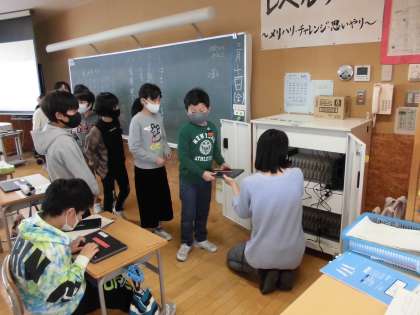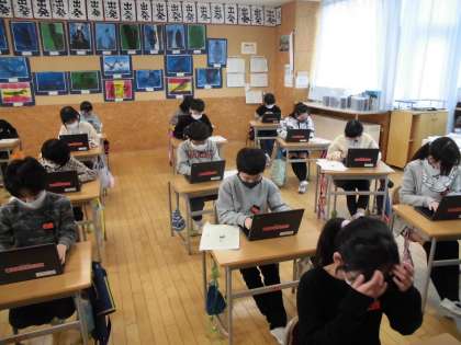 「一人一台端末」として渡されるパソコンとの出会いです。子供たちはわくわく、ドキドキしながらパソコンを受け取りました。説明をよく聞き、慎重に作業を進めました。これから始まる端末を使用した学習に、子供たちは期待を膨らませていました。