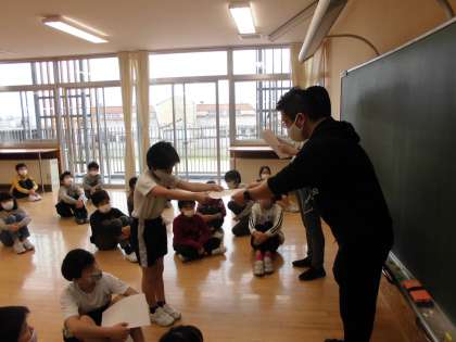 今日の学年朝の会では、2月に行われた富山市なわとび交流会の表彰が行われました。表彰された子供たちはちょっぴり照れくさそうに、しかし堂々とした様子で賞状を受け取りました。見ている子供たちはがんばった友達に温かい拍手を送りました。表彰されたみなさん、おめでとう!これからもたくさん縄跳びに取り組んで、できる技をどんどん増やしていってほしいです。