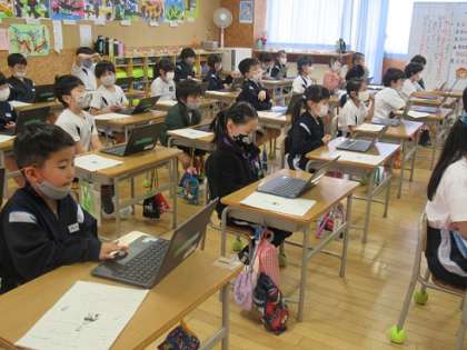 12日(金)に全校一斉に、自分のパソコンにアドレスを保存したり、パスワードを入力したりしました。1年生は、初めての体験でなかなかうまく進まないこともありましたが、自分が何をしているのか、操作の意味を1年生なりに知ることで、興味もわいてきました。この日、手にしたパソコンが卒業まで自分のツールとして使うことができると知り、すてきなプレゼントを手にしたような気持ちになっていました。
