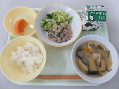 ごはん 牛乳 ぶたにくのしおこうじいため そえやさい ごもくみそしる