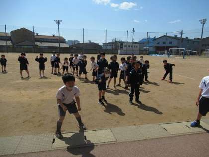 春らしい暖かい日差しの下、1年生として最後の体育の授業を行いました。美しい立山連峰を背に、グラウンドを思い切り走り、気持ちのよい汗を流しました。また、みんなでなかよく「だるまさんがころんだ」をして、楽しみました。みんなの笑顔がきらきら輝いて、思い出に残るひとときとなりました。