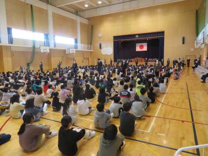 担任の先生が紹介されました。進級した子供たちからは、「がんばるぞ」という気持ちが伝わってきました。