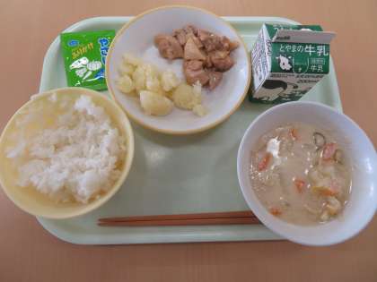 ごはん 牛乳 とりにくのばいにくに こふきいも ごじる